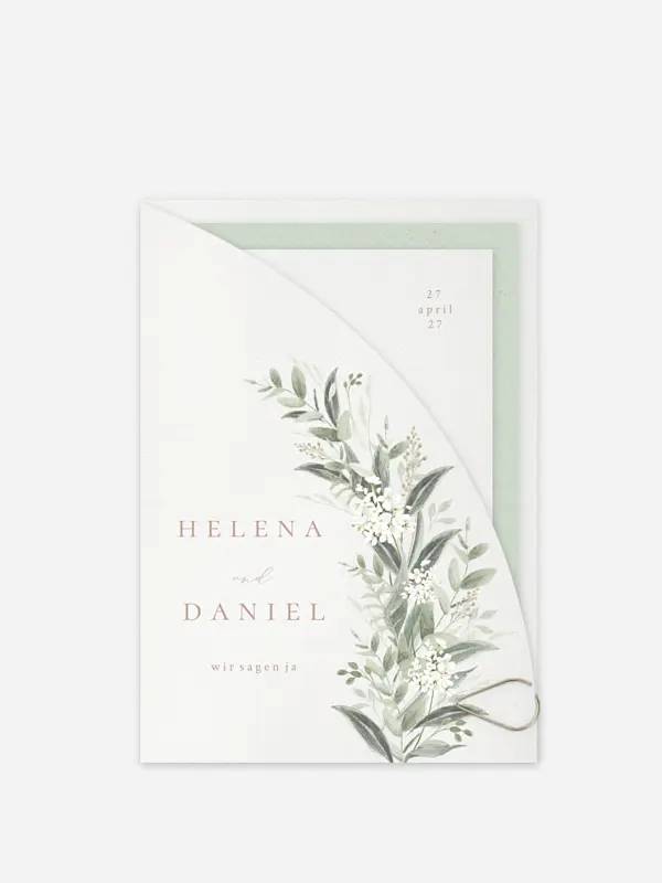 Handgemalte Greenery-Elemente bilden den Fokus auf der Hochzeitseinladung "Beauty of Nature".