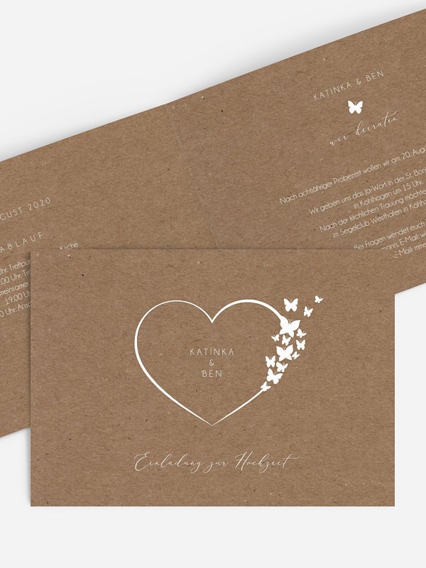 Verspielt, elegant und romantisch: Mit der Einladungskarte "Delicate" stimmen Sie Ihre Gäste auf den Stil Ihrer Hochzeit ein.