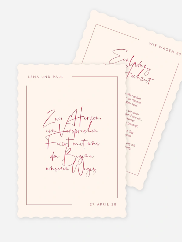 Mit der Hochzeitseinladung "Die Farbe der Liebe" laden Sie Ihre Gäste modern und stilsicher zur Trauung ein.