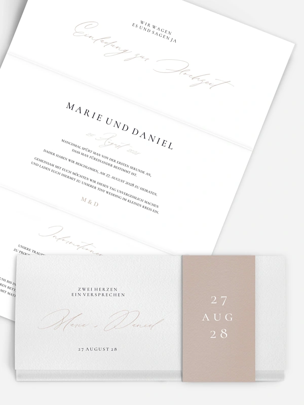 Mit der Hochzeitseinladung "Fine Details" teilen Sie Ihren Lieben auf schöne Weise mit: Der große Tag ist da! Ein liebevolles Ja – für ein gemeinsames Leben voller Erinnerungen. Stilvoll, persönlich und voller Vorfreude.