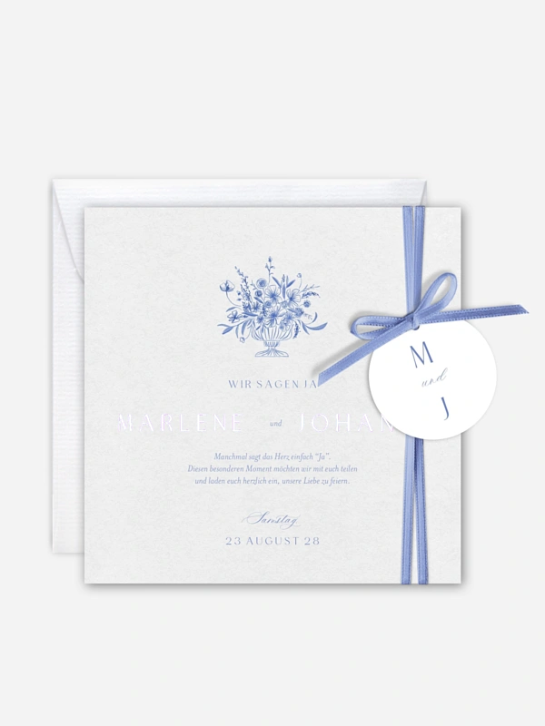 Zarte Blüten und Blätter stehen im Zentrum der stilvollen Hochzeitseinladung "Fine Florals".