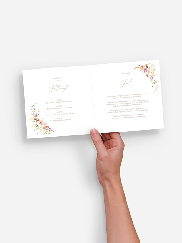 - Innenseiten: 1 Doppelseite für das Brautpaar, 2 unterschiedliche Doppelseiten für die Hochzeitsgäste, für Hochzeitspaare jeden Geschlechts geeignet.