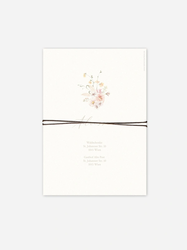 Zarte, wunderschöne Blüten umspielen Ihre Namen auf der Hochzeitseinladung "Flora".
