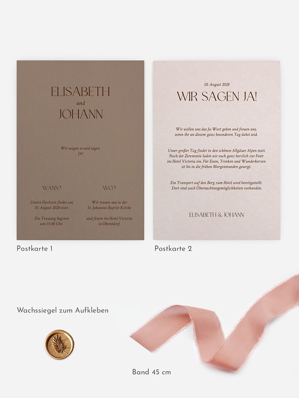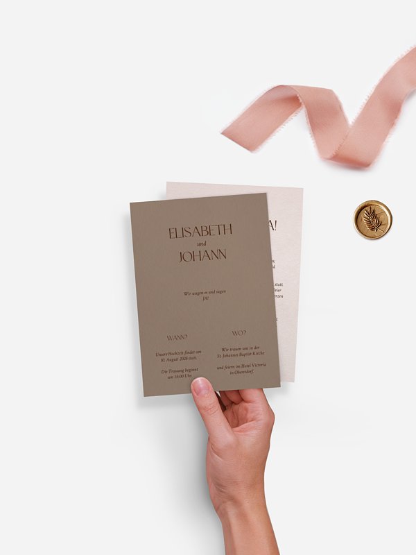 Kein Gefühl verbindet mehr als die Liebe und keine Karte bringt das stärker zum Ausdruck als unsere Hochzeitseinladung "Mocca".