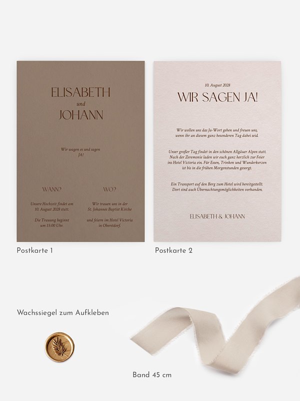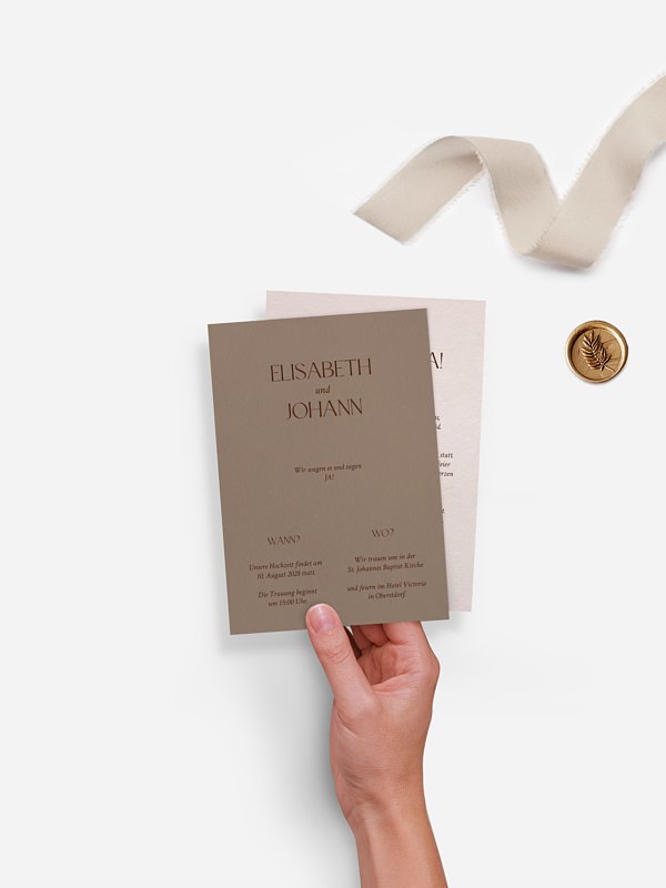 Kein Gefühl verbindet mehr als die Liebe und keine Karte bringt das stärker zum Ausdruck als unsere Hochzeitseinladung "Mocca".