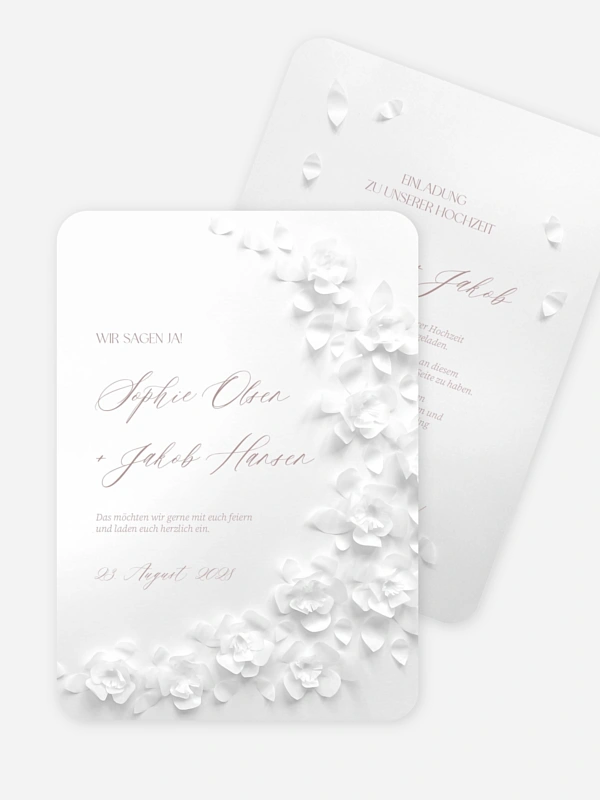 Kein Gefühl verbindet mehr als die Liebe und keine Karte bringt das stärker zum Ausdruck als unsere Hochzeitseinladung "Poem on paper". Dieses Design besitzt eine Cut-out-Optik, die lediglich aufgedruckt ist.