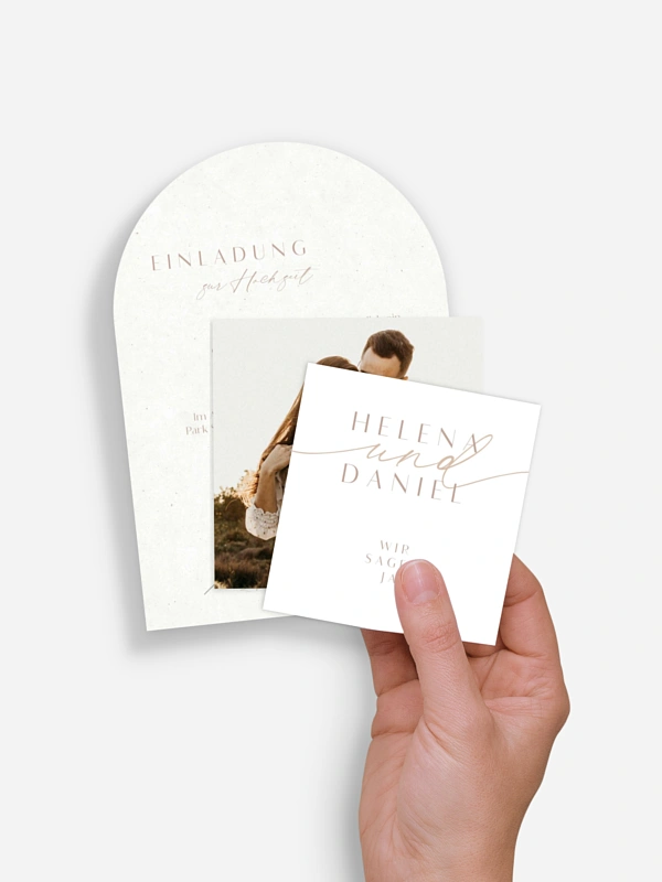 „Es war alles perfekt! Die Qualität der Karten und Umschläge ist erstklassig, das Druckbild hervorragend und der Service bestens.“ (Familie Hübner)
