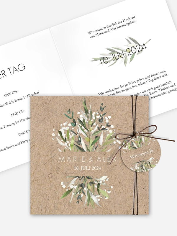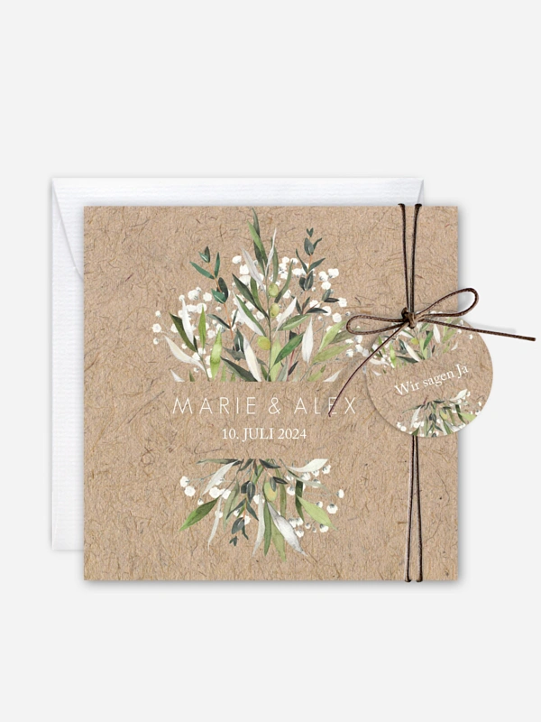 Die Hochzeitseinladung "Rustic Italia" besticht mit mediterranem Flair und modernen Greenery-Elementen.