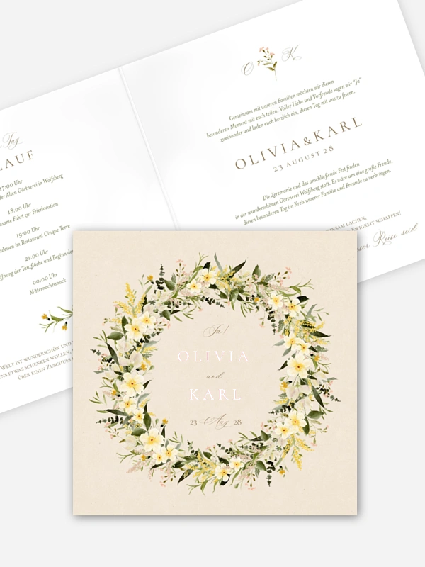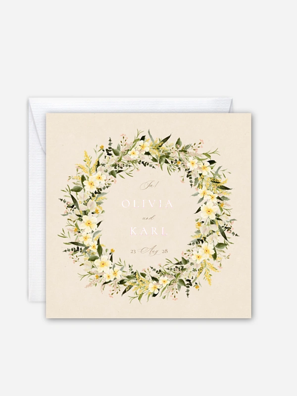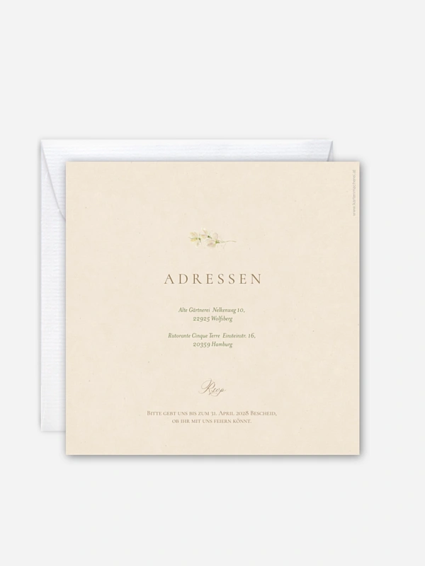 Zarte Blüten und Blätter stehen im Zentrum der stilvollen Hochzeitseinladung "Summer Petals".