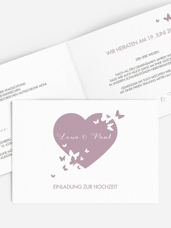 Ihre stürmische Liebe wird nun offiziell: Laden Sie Ihre Gäste stilvoll mit der Hochzeitseinladung "Wild Heart" ein.