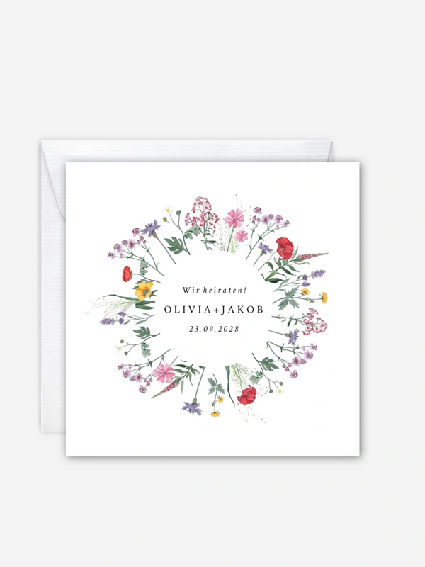 Hochzeitseinladung Wildblumenkranz