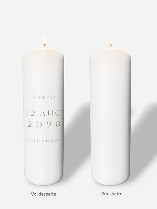 Ideal für das Ritual der Hochzeitskerze bei Ihrer freien Trauung: Die personalisierbare Kerze "Big Date" ist ein bleibendes Erinnerungsstück.