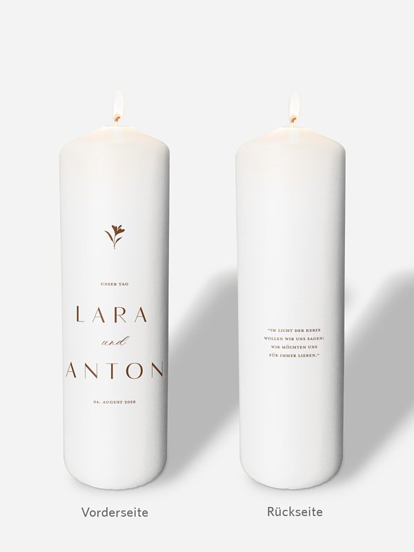 Ideal für das Ritual der Hochzeitskerze bei Ihrer freien Trauung: Die personalisierbare Kerze "Monogram muse" ist ein bleibendes Erinnerungsstück.