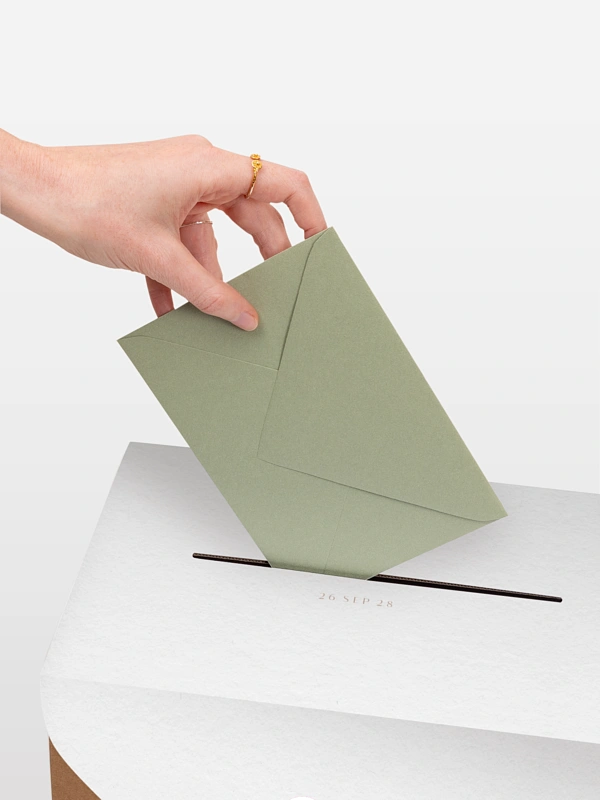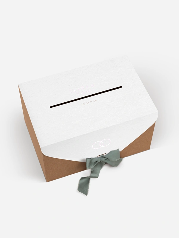 Die Kartenbox Hochzeit "Bold Simplicity" verbindet schlichte Eleganz mit praktischer Funktion. Sie bietet euren Gästen einen stilvollen Platz, um Glückwünsche und kleine Geschenke sicher zu überreichen. Mit ihrem reduzierten Design fügt sie sich harmonisch in jede Hochzeitsdekoration ein. Dank hochwertiger Verarbeitung ist sie stabil und langlebig – und dank schneller Lieferung von kartenmacherei rechtzeitig für euren großen Tag bereit.