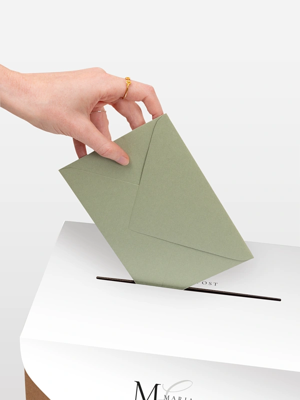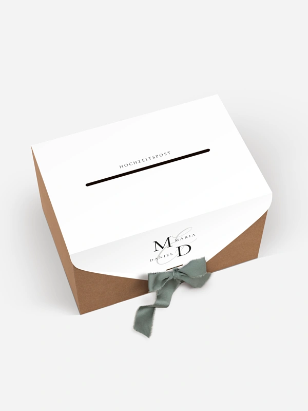 Die Kartenbox Hochzeit "Elegant Love" bringt stilvolle Raffinesse auf eure Feier und sammelt Glückwünsche sowie kleine Aufmerksamkeiten eurer Gäste an einem besonderen Platz. Mit ihrem eleganten Design ergänzt sie eure Hochzeitspapeterie harmonisch und setzt dabei einen edlen Akzent. Sie ist stabil verarbeitet und bleibt den ganzen Tag über zuverlässig an eurer Seite. Dank schneller Lieferung von kartenmacherei ist sie rechtzeitig bei euch und sofort einsatzbereit.