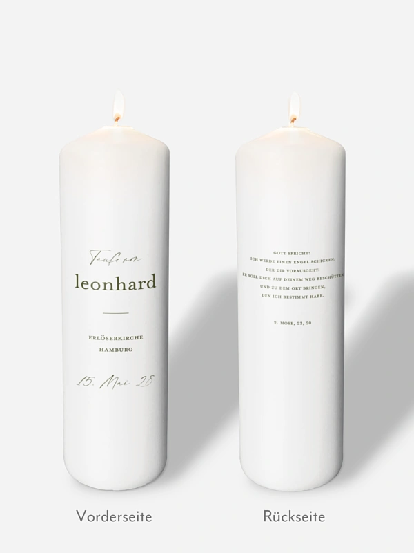 Wir empfehlen, eine dunkle Schriftfarbe zu wählen, da helle Varianten auf der weißen Kerze nicht gut zu erkennen & zu lesen sind.