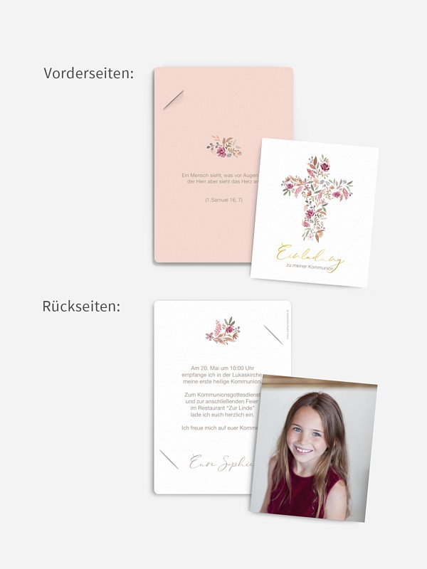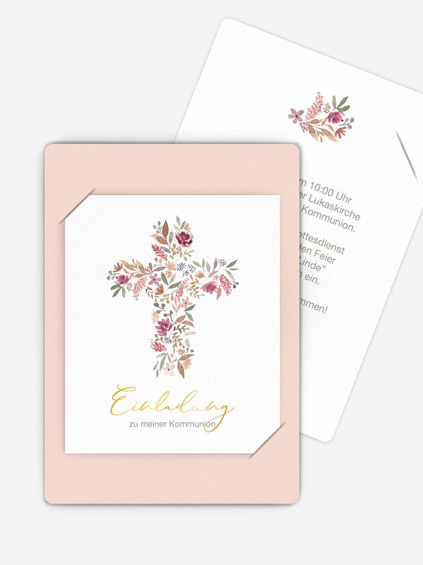 Kommunionseinladung Blütenkreuz