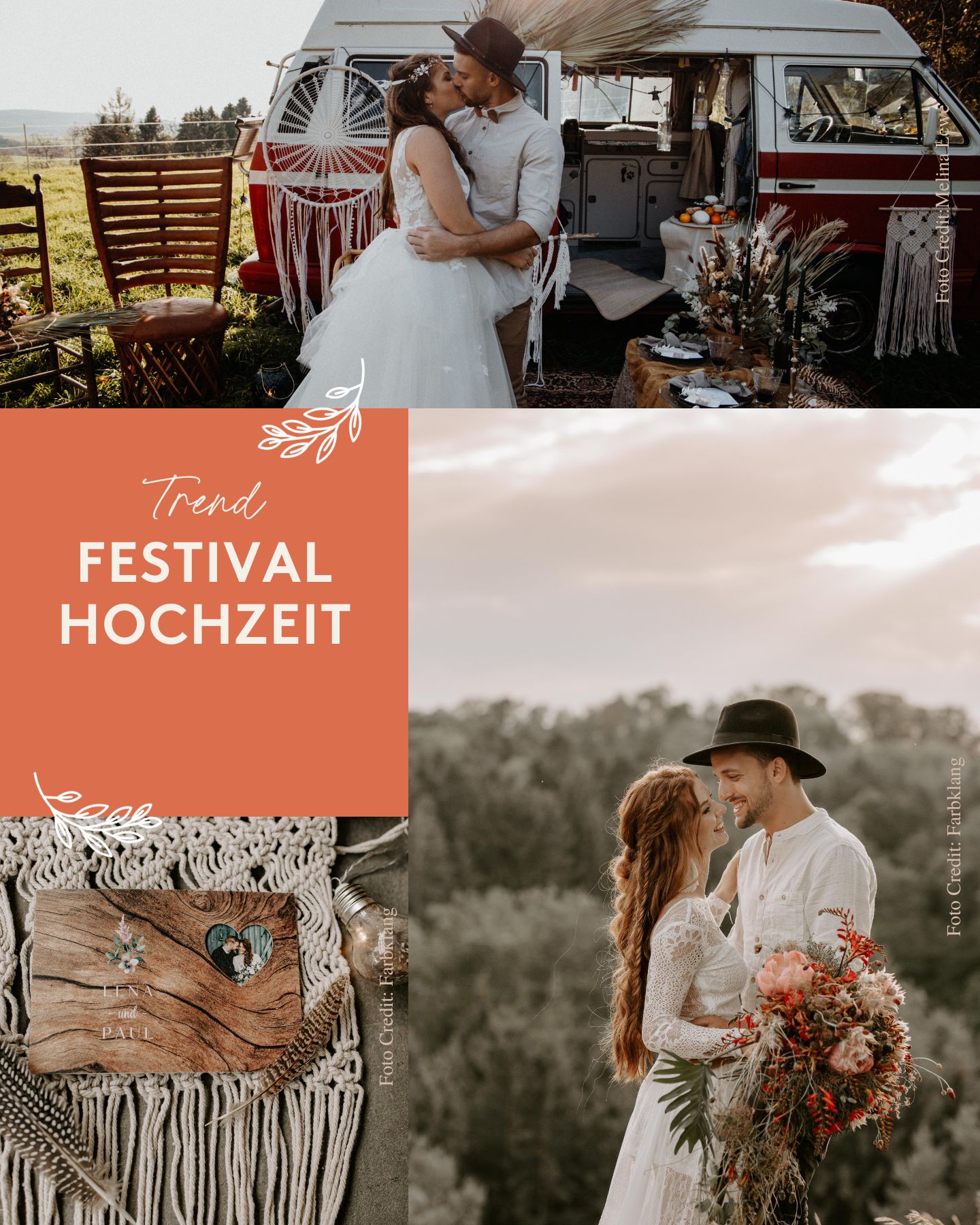 Ausgelassene Stimmung, die besten Freunde, warme Sommerabende und gute Musik: Das alles verbinden wir mit der Festival-Hochzeit und sind deshalb ein Riesenfan dieses ungewöhnlichen Hochzeitsstils! Festival-Hochzeiten sind eine großartige Möglichkeit, euch und eure Liebe zum Ausdruck zu bringen. Sie sind zwanglos und entspannt, fröhlich und familiär. Von Livemusik bis zu Streetfood-Trucks – je lässiger und unbeschwerter, desto besser ist das Thema getroffen!