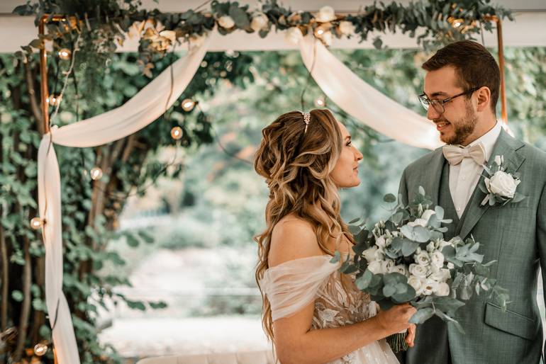 Im beliebten Greenery Look findet die Hochzeit dieses Styled Shoots im botanischen Stil natürlich im Freien statt.