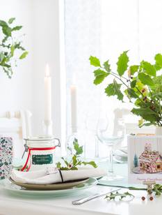 Deinen Weihnachtstisch kannst du mit natürlichen Materialien ganz einfach aufpeppen. Wenn du Glück hast, genügt schon ein Waldspaziergang, um alle nötigen Materialien, wie Tannenzweige und -zapfen, Moos, Äste, Eicheln, Nüsse, Schnee- oder Winterbeeren zusammenzubekommen. Kein Wald weit und breit? Dann hilft dir ein kleiner Einkauf, deine Tischdeko zu Weihnachten selbst zu machen. So kannst du zum Beispiel Orangenscheiben schneiden und im Backofen trocknen, um sie später in deine Deko zu integrieren. Auch Anissterne, Nelken, Zimtstangen und Granatäpfel lassen sich dekorativ auf deiner Festtafel arrangieren.