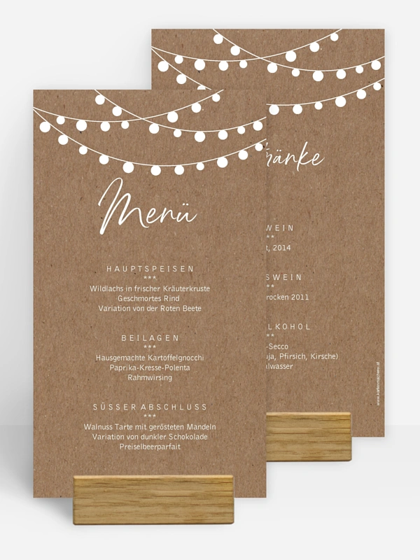 Dank der Menükarte "Lichterzauber" weiß jeder Gast, was es Leckeres zu Essen und zu Trinken gibt.