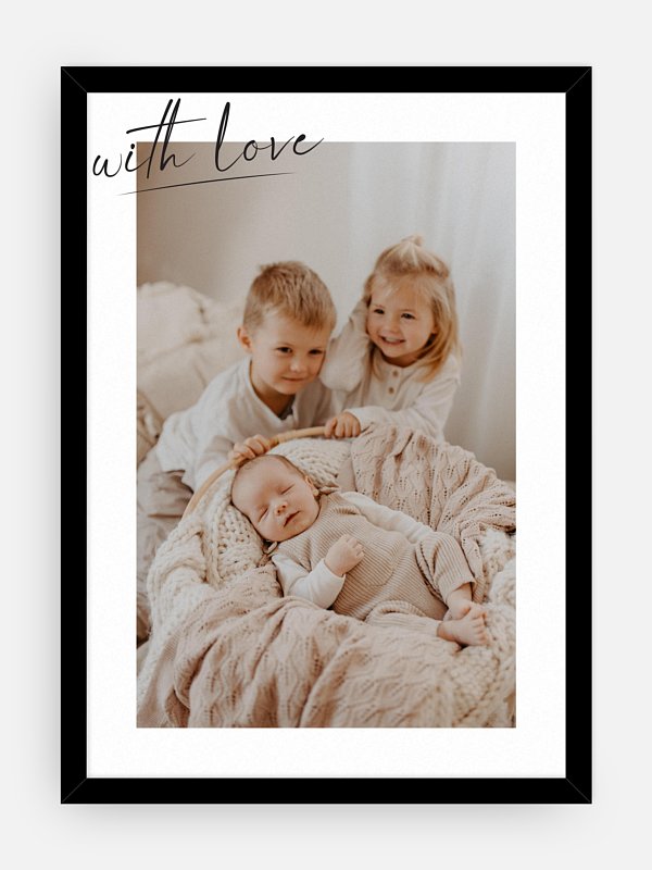 Mit dem Poster "Mit Liebe" steht Ihre schönste Erinnerung im Rampenlicht. Das vollflächige Bild ist ideal, um Ihren bedeutsamsten Moment zu präsentieren.