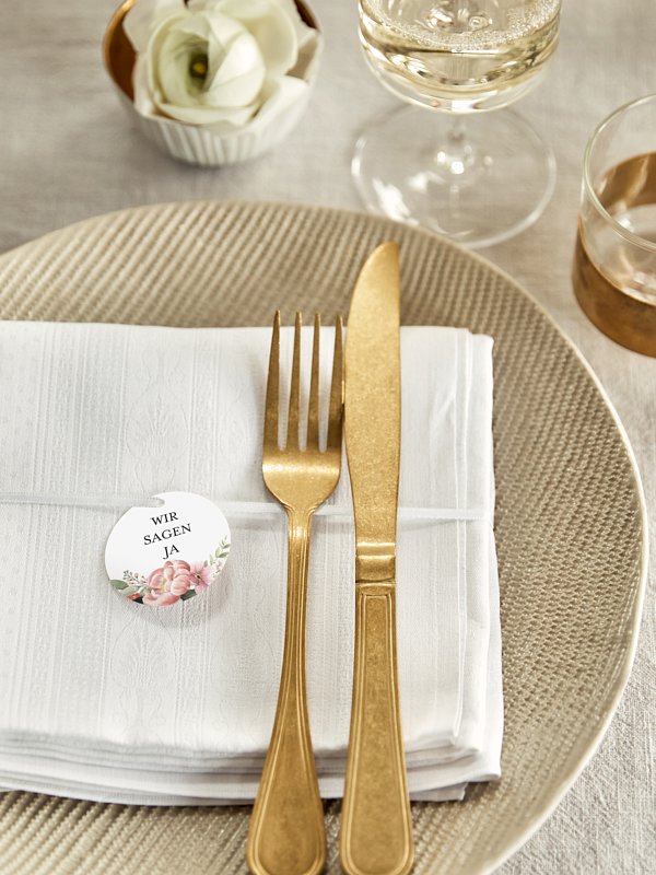 Was macht die Hochzeitseinladung "Peach Peony" oder kleine Gastgeschenke noch schöner? Der passende Anhänger mit liebevollen Blumendetails.