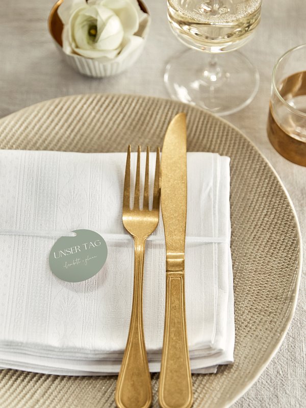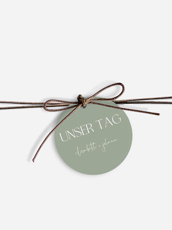 Verzieren Sie Ihre Gastgeschenke mit dem passenden Anhänger im Design "The Big Day". Wählen Sie aus verschiedenen Bändern für das perfekte Gesamtbild.