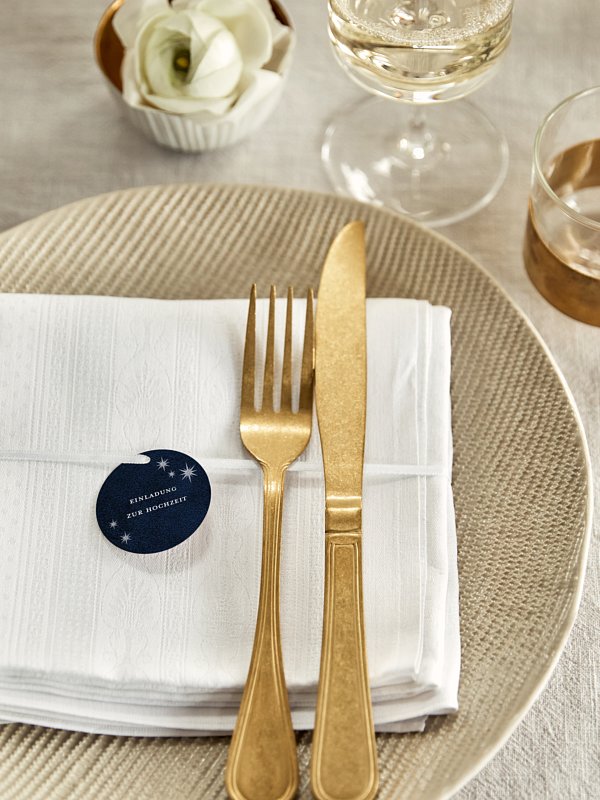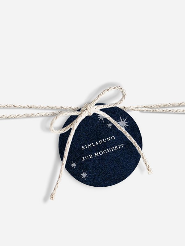 Der Anhänger "To The Moon" schafft durch kleine Sterne die Verbindung zur passenden Einladungskarte.