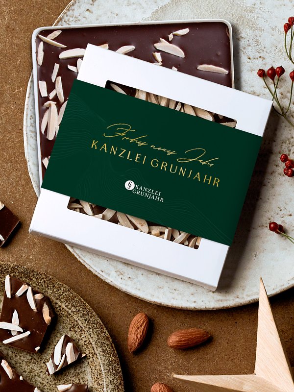 Überraschen Sie Ihre Kunden mit einem köstlichen Geschenk zur Weihnachtszeit. Die personalisierbare Schokobox "Gold Rush" mit Ihrem Logo zeigt auf stilvolle Art die Wertschätzung Ihrer Zusammenarbeit.