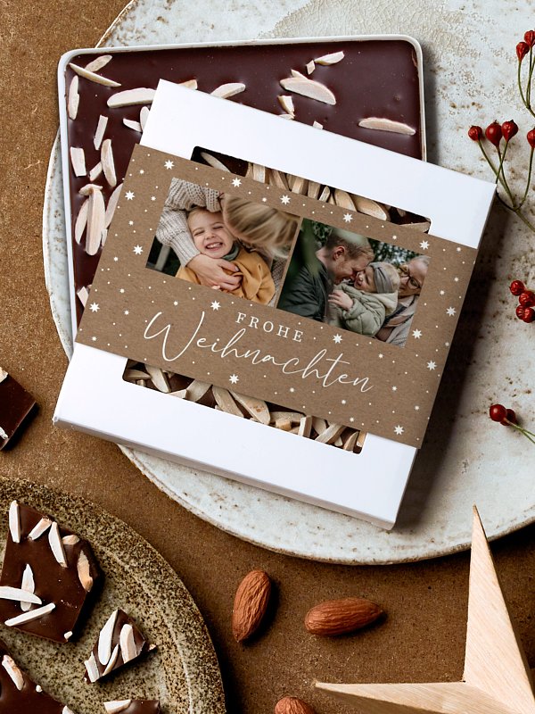 Mit der passenden Schokobox zur Ihrer Weihnachtskarte "Festhimmel Kraftpapier" wird Ihre Weihnachtspost garantiert ein Hingucker.