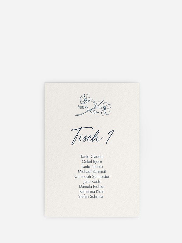 Perfekt für Ihre DIY-Sitzplan Idee: Die Karten des Sitzplan Kreativ "Mediterran". Die Karten werden beidseitig identisch bedruckt. So können Ihre Gäste die Namen von beiden Seiten gut erkennen – praktisch und hübsch zugleich!