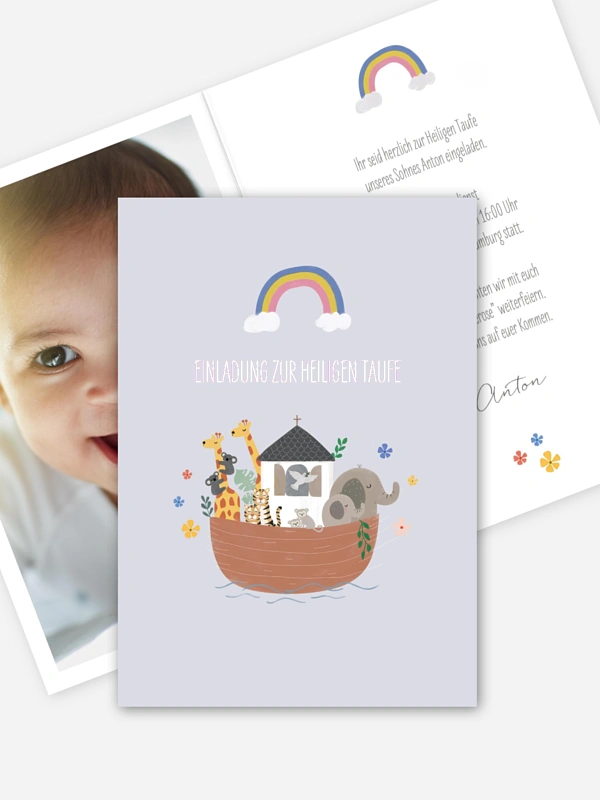 Die Einladungskarte "Ahoi Tiere" bietet nicht nur viel Platz für einen einladenden Text, sondern verzaubert auch durch seine süßen Illustrationen.