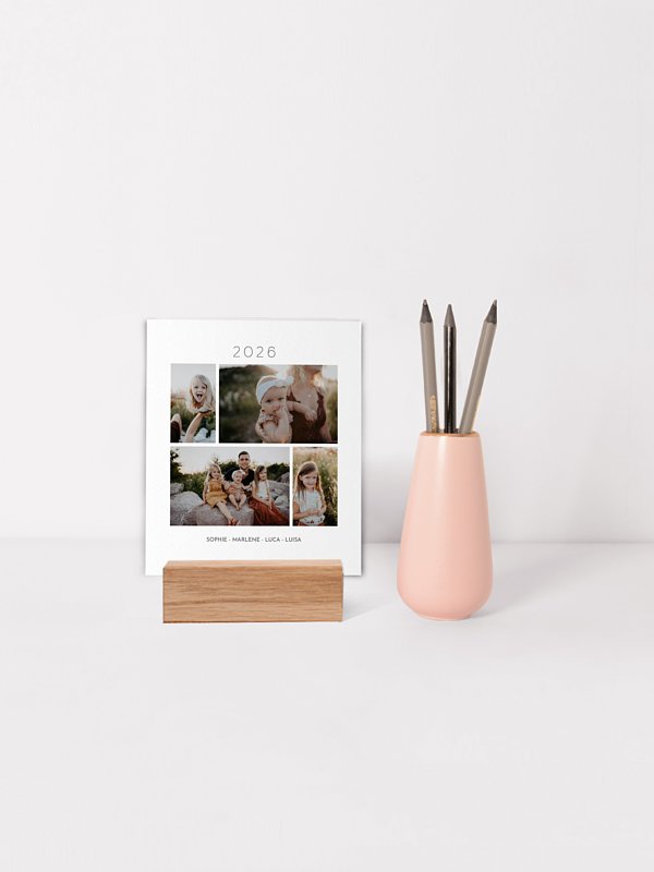 Der Tischkalender „Erinnerungsstücke“ begleitet dich durchs Jahr und hält deine liebsten Momente in greifbarer Nähe. Ob auf dem Schreibtisch oder im Wohnzimmer – jede Seite erinnert dich an besondere Zeiten mit deinen Lieblingsmenschen. So wird aus deinem Alltag ein kleines Stückchen Freude, das Monat für Monat ein Lächeln schenkt. Gedruckt auf hochwertigen Papieren und mit schneller Lieferung kommt dein Kalender im Handumdrehen zu dir nach Hause.
