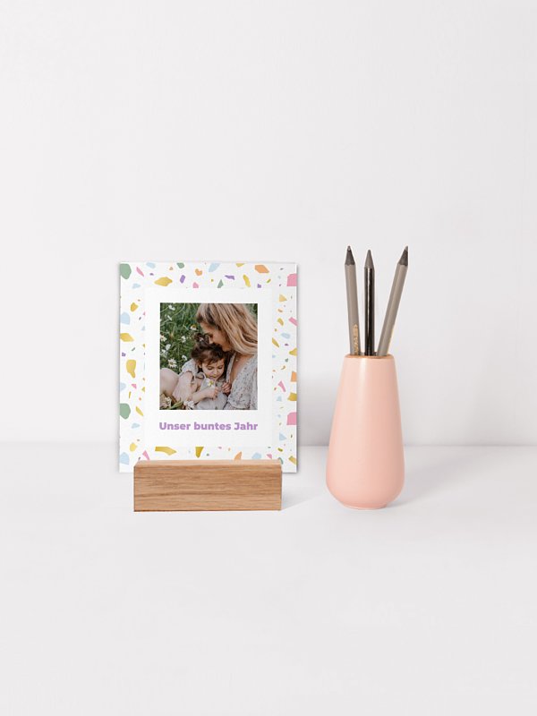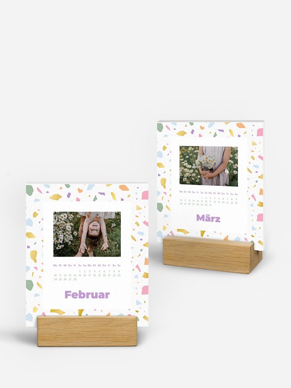 Bringen Sie Farbe in Ihren Alltag – mit dem Tischkalender "Jahresmosaik". Das fröhliche Terrazzo-Muster macht den Kalender zu einem echten Hingucker und begleitet Sie durch die schönsten Momente des Jahres. Ob spontane Schnappschüsse, der Urlaub am Meer oder das ausgelassene Toben im Garten – auf jeder Seite findet sich Platz für Ihre ganz persönlichen Geschichten.