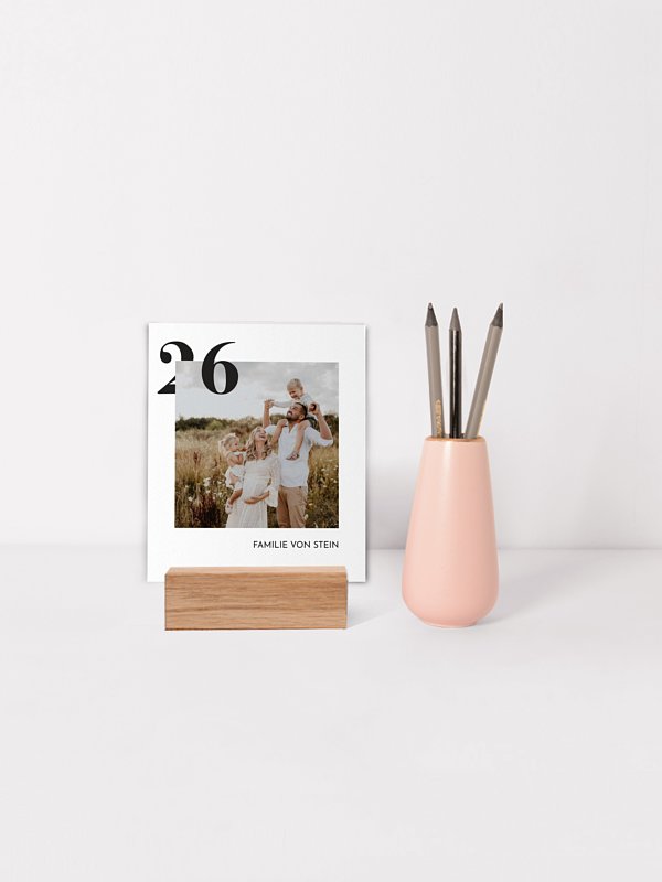 Der Tischkalender "Moments in Time" macht die Vorfreude auf euer großes Ereignis jeden Tag ein Stück greifbarer. Ob Hochzeit, Jubiläum oder ein anderes Herzensziel – er begleitet euch Monat für Monat mit liebevoll gestalteten Erinnerungen. Mit hochwertigem Druck und stilvollem Design ist er nicht nur praktisch, sondern auch ein schöner Blickfang in eurem Zuhause. Dank schneller Lieferung ist er im Handumdrehen bei euch und bereit für euren gemeinsamen Countdown.