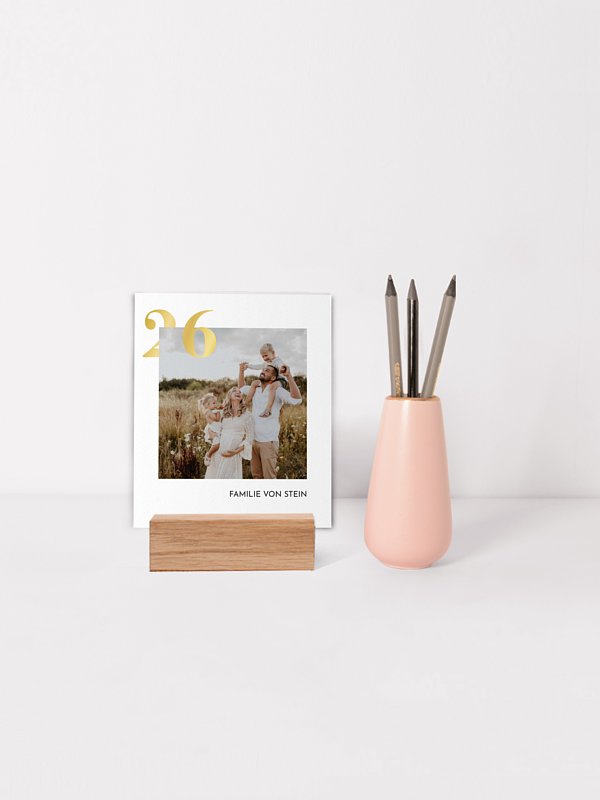 Der Tischkalender "Moments in Time" macht die Vorfreude auf euer großes Ereignis jeden Tag ein Stück greifbarer. Ob Hochzeit, Jubiläum oder ein anderes Herzensziel – er begleitet euch Monat für Monat mit liebevoll gestalteten Erinnerungen. Mit hochwertigem Druck und stilvollem Design ist er nicht nur praktisch, sondern auch ein schöner Blickfang in eurem Zuhause. Dank schneller Lieferung ist er im Handumdrehen bei euch und bereit für euren gemeinsamen Countdown.