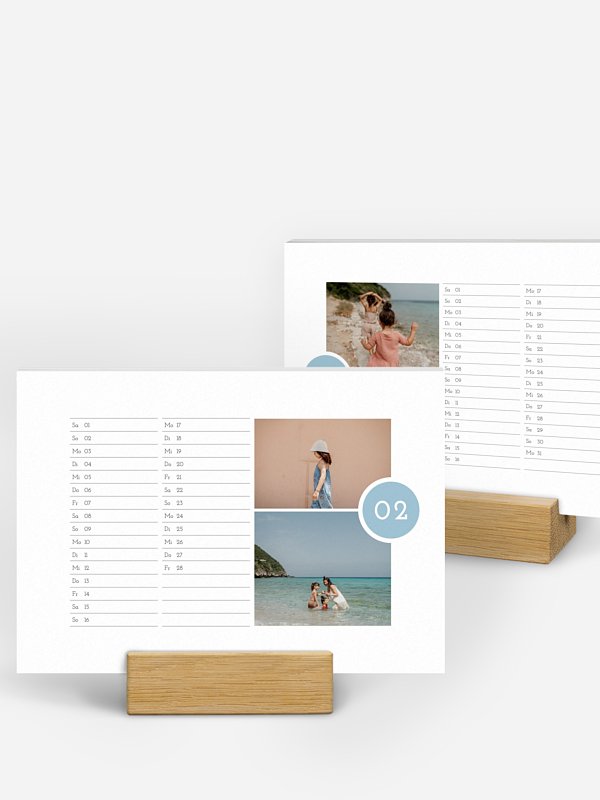 Ob im Büro oder zu Hause – mit unserem personalisierbaren Tischkalender "Zeit für uns" behalten Sie Termine im Blick und setzen zugleich einen persönlichen Akzent auf Ihrem Schreibtisch. Wählen Sie Ihre Lieblingsbilder und gestalten Sie Ihren Kalender Monat für Monat individuell.