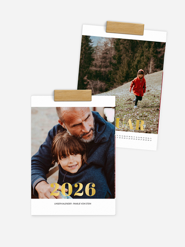 Ein Kalender bringt eure schönsten Momente Monat für Monat an die Wand: Das perfekte Geschenk für Kinder, Großeltern, Partner:in, Freund:innen, Kolleg:innen … oder einfach für dich selbst. Du speicherst deine Lieblingsmomente nur ein einziges Mal – und wählst daraus ganz leicht die schönsten Fotoprodukte für deine Liebsten. Wir schenken dir 10 %, wenn du zwei oder mehr Fotoprodukte* bestellst.