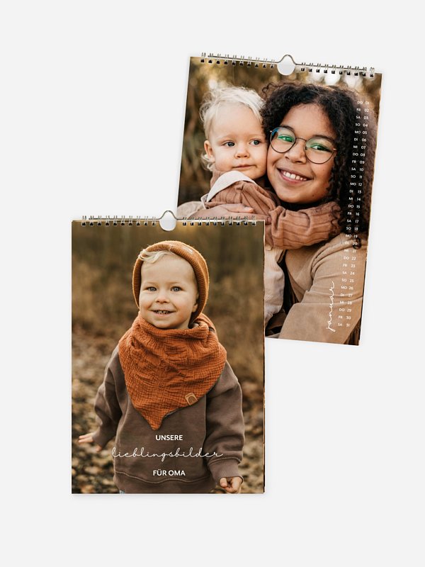 Ein Kalender bringt eure schönsten Momente Monat für Monat an die Wand: Das perfekte Geschenk für Kinder, Großeltern, Partner:in, Freund:innen, Kolleg:innen … oder einfach für dich selbst. Du speicherst deine Lieblingsmomente nur ein einziges Mal – und wählst daraus ganz leicht die schönsten Fotoprodukte für deine Liebsten. Wir schenken dir 10 %, wenn du zwei oder mehr Fotoprodukte* bestellst.