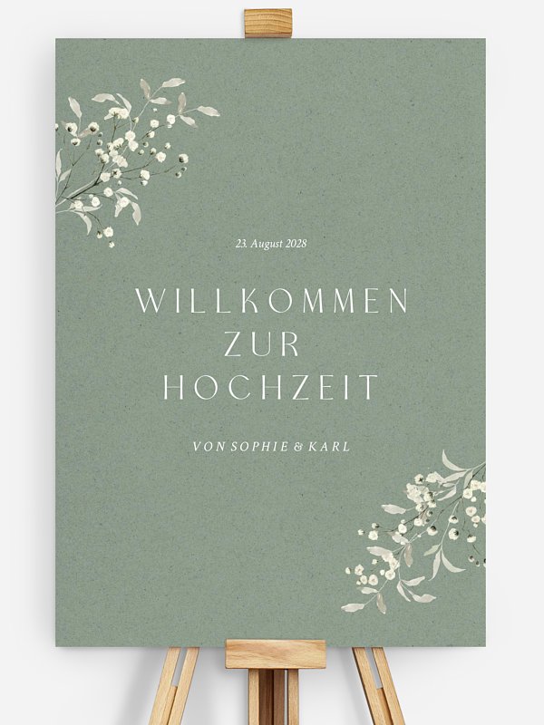Begrüßen Sie Ihre Gäste stilvoll mit dem Willkommensschild "Love in Bloom". Am Eingang platziert, setzt es den Ton für Ihren Hochzeitstag. Hinweis: Das Schild wird ohne Staffelei geliefert.