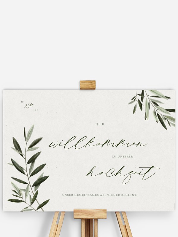 Damit fühlt sich jeder Gast herzlich empfangen! Das Willkommensschild "Scent of Olives" sorgt schon am Eingang Ihrer Location für mediterranen Flair.
